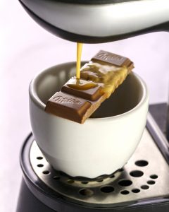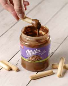 Fotografía de bodegón para Milka enfocada en transmitir cremosidad, suavidad y universo visual de marca. Imágenes creadas para web y redes sociales que potencian apetencia, identidad cromática y reconocimiento del producto.